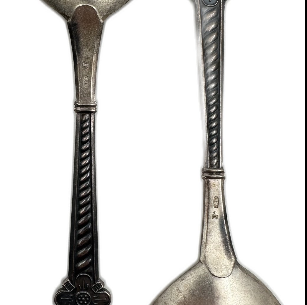 По два клейма на каждой ложке: J 4, Э звезда с серпом и молотом 917