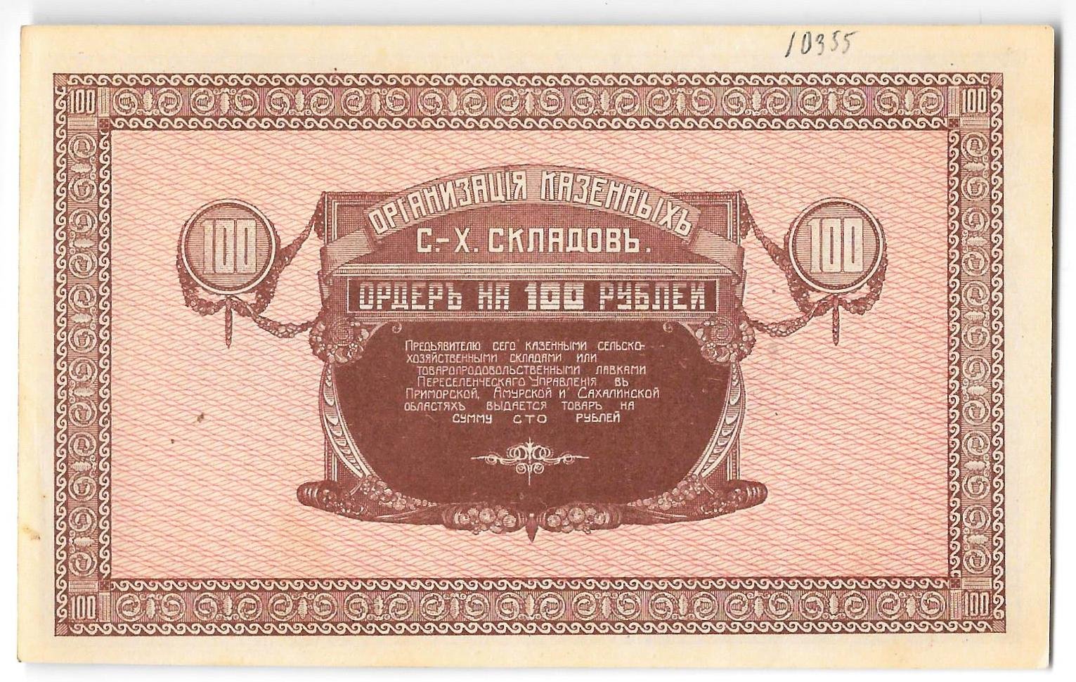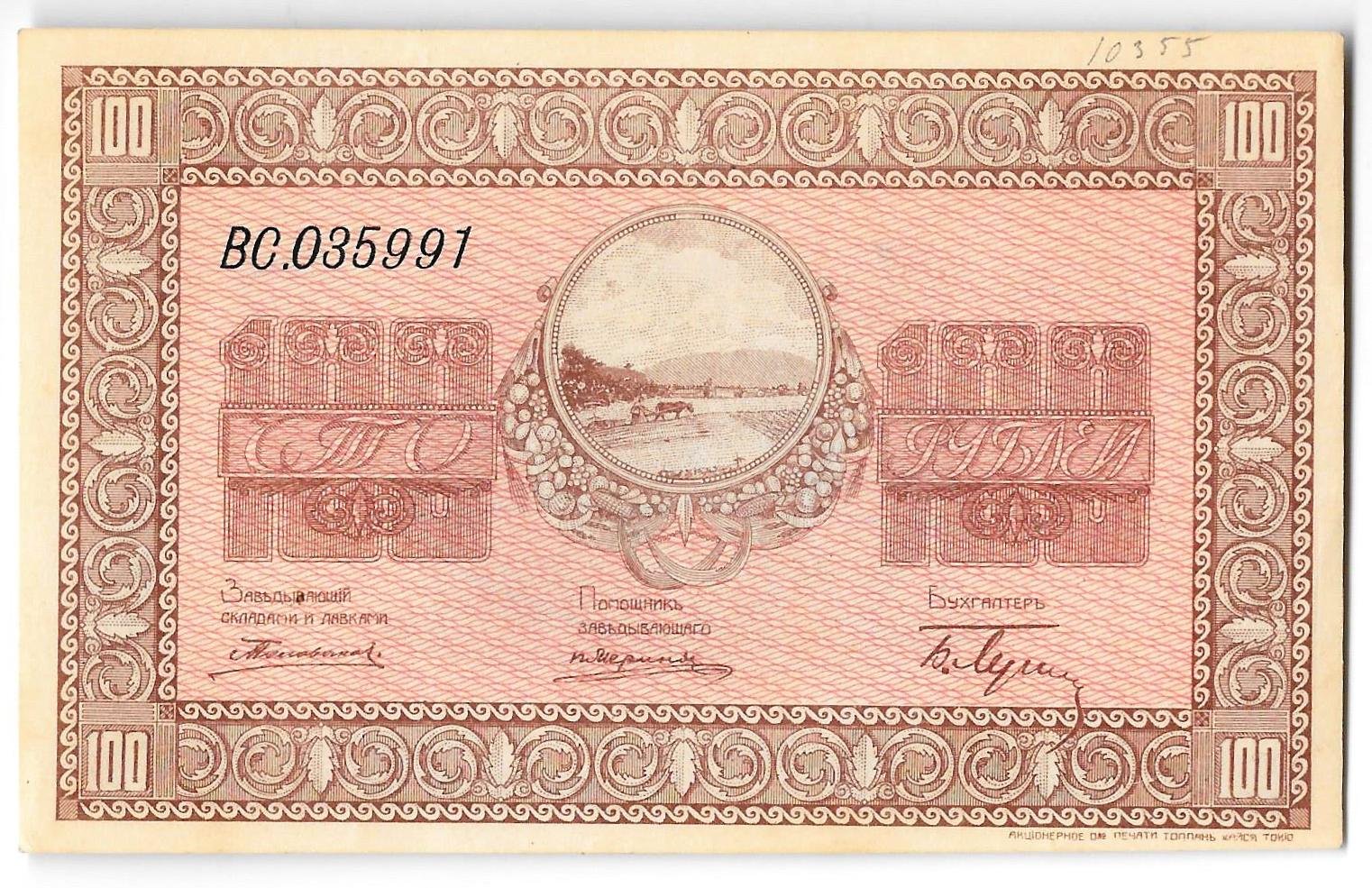 Банкнота 100 рублей 1920 Чита Читинское ОГБ
