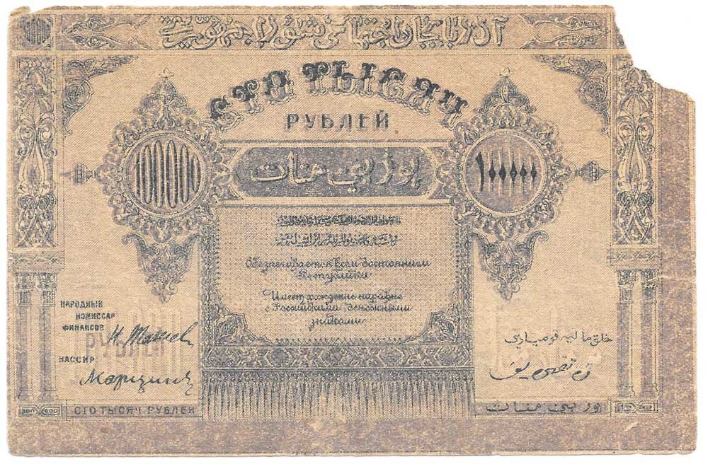 фото для Банкнота 250000 рублей 1922 Азербайджан Азербайджанская республика Аверс