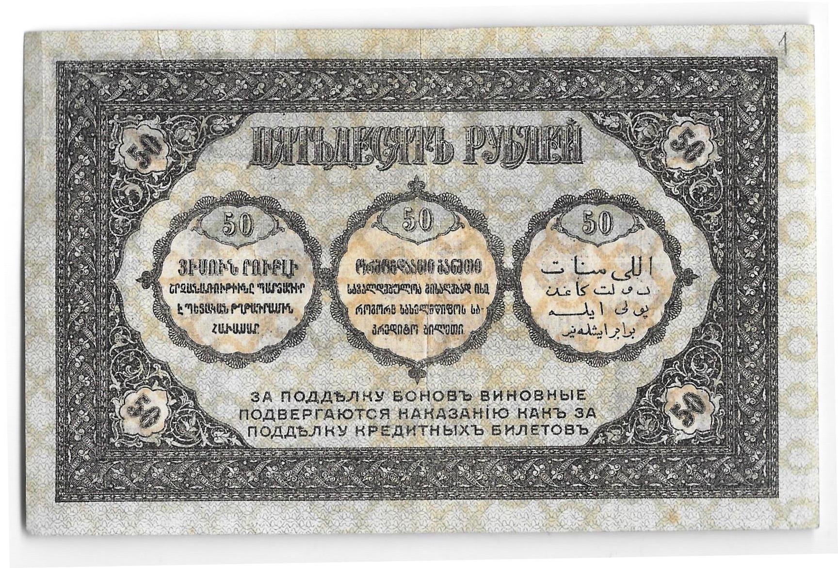 фото для Банкнота 50 рублей 1919 Грузия Аверс