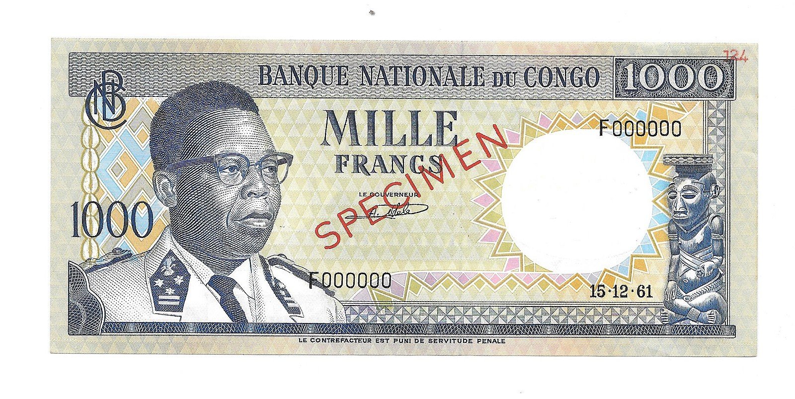 фото для Банкнота 1000 франков 1959 Бельгийское Конго и Руанда-Урунди Аверс