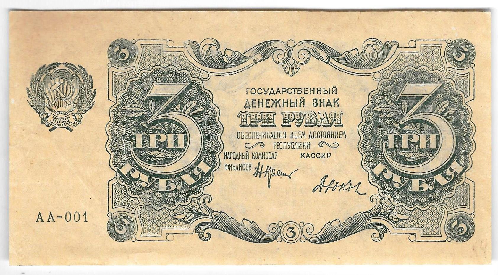 Банкнота 3 рубля 1922 Смирнов