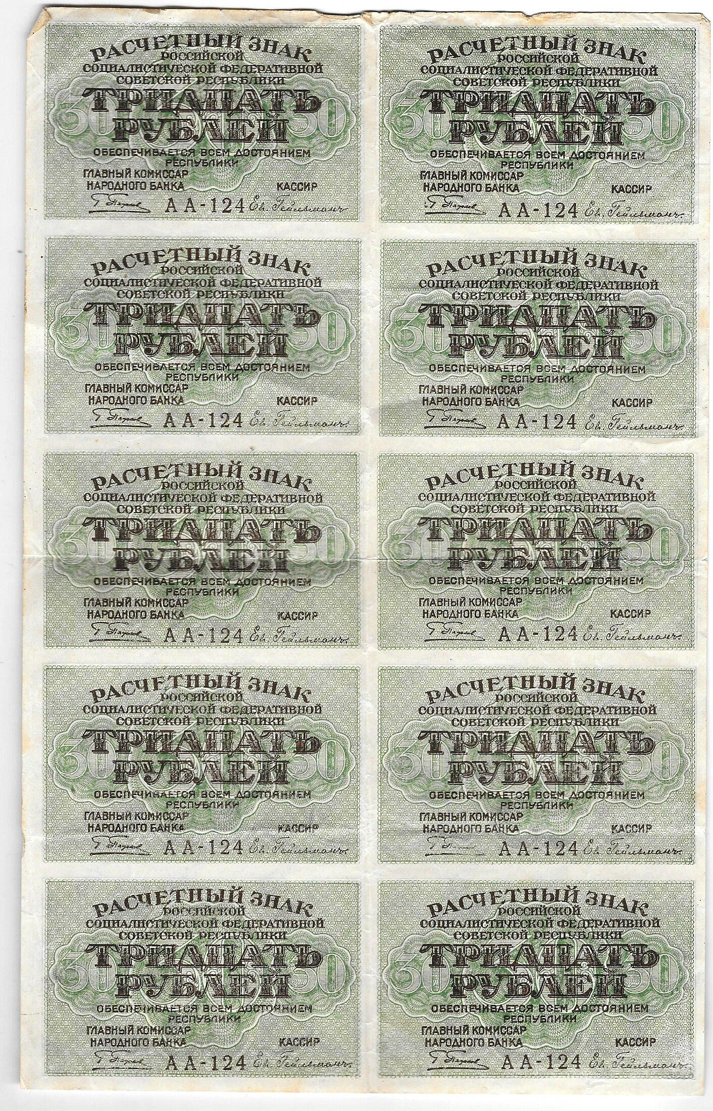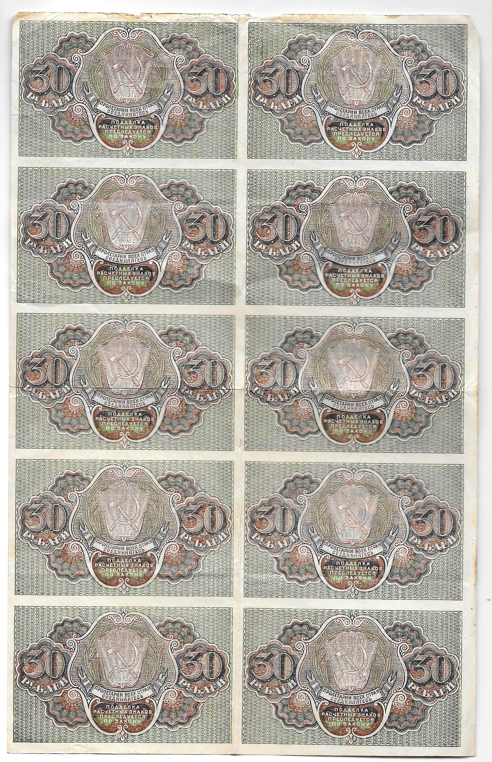 Банкнота 30 рублей 1919 Стариков