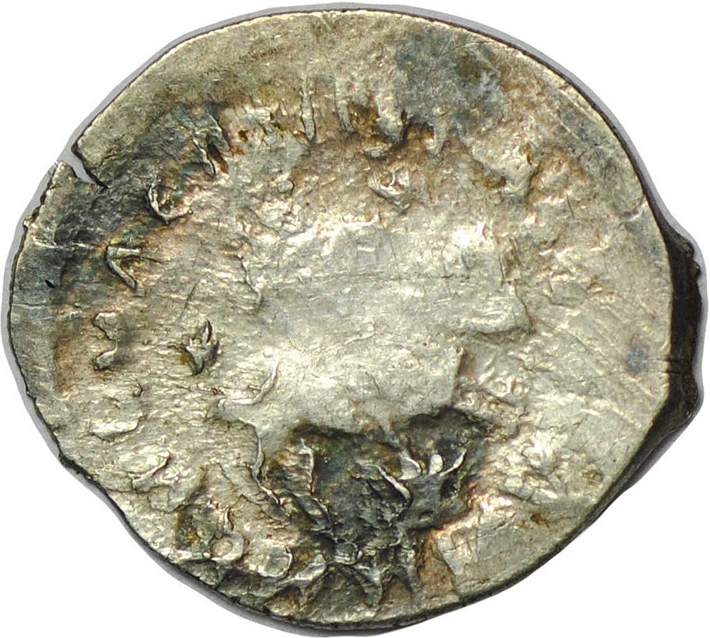 Аверс Всадник с копьем вправо, смотрит назад. Круговая легенда: "КНАZЬ ВЕЛИКИI ВАСИЛЕИ"