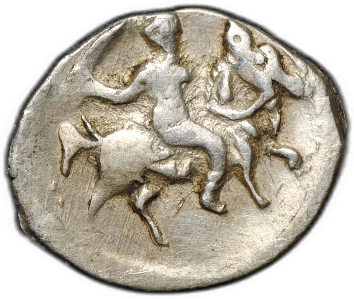 Реверс: Воин с мечом и топором вправо влево. Прическа удлиненная