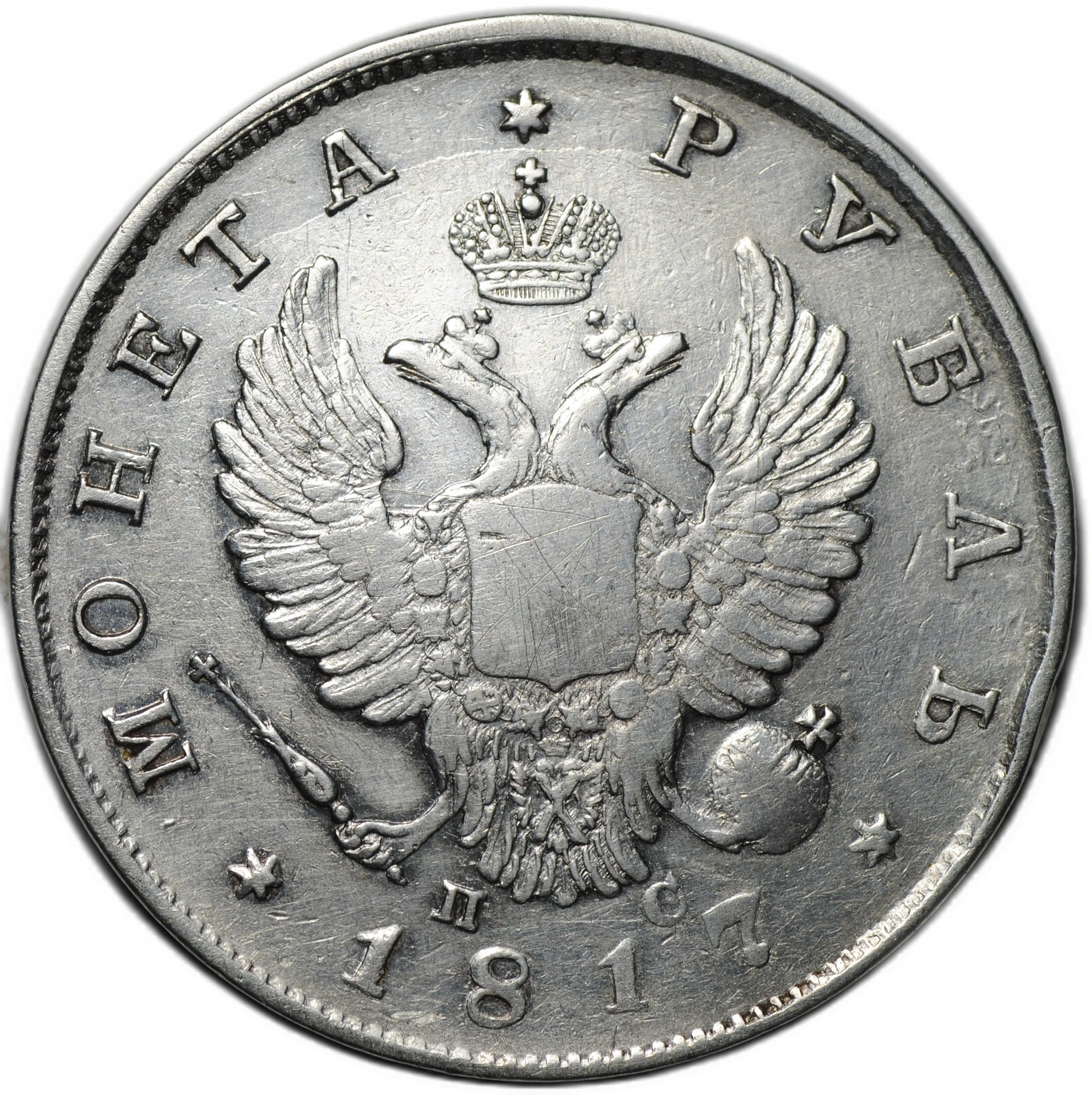 Аверс: орел образца 1810 года, центральная корона малая