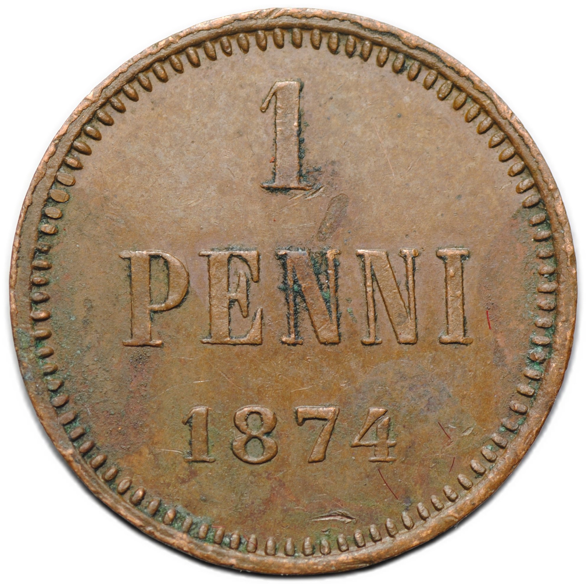 Монета 1 пенни 1875 Русская Финляндия