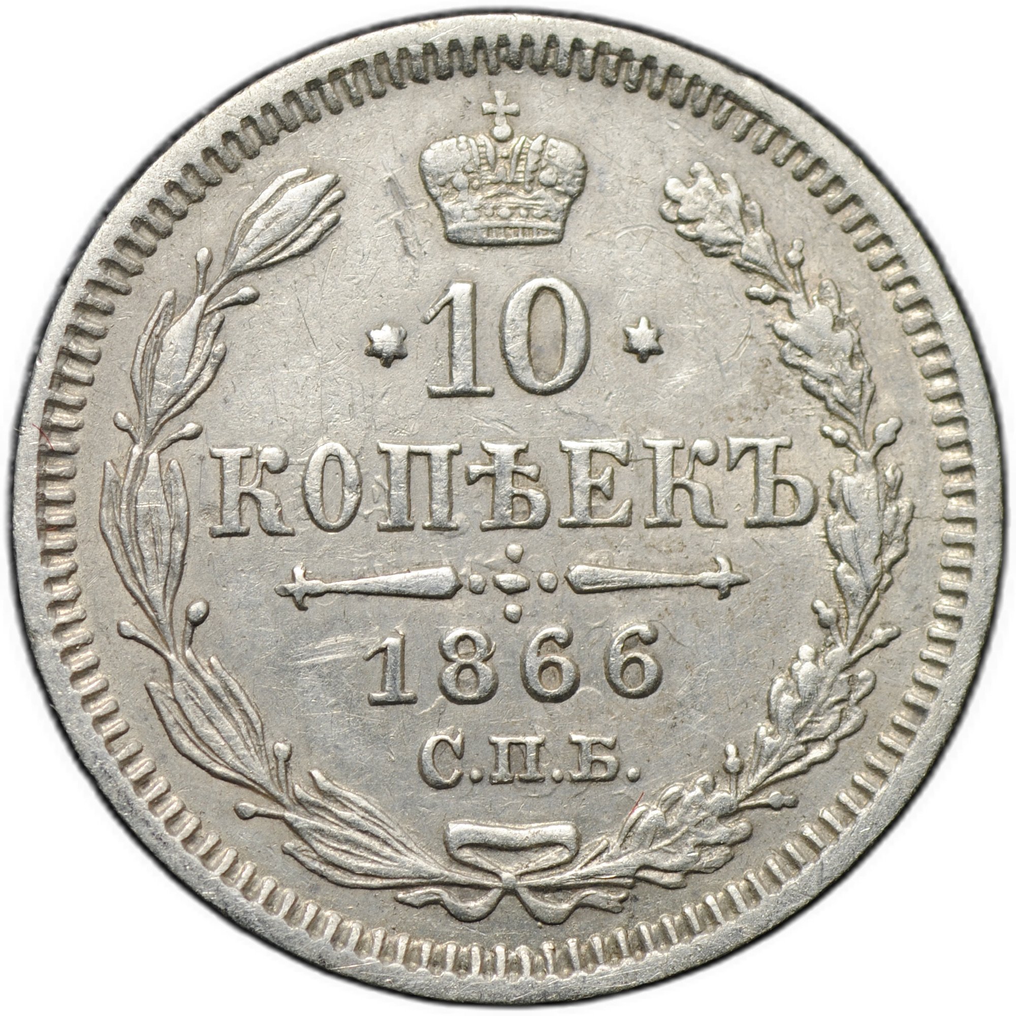 фото для Монета 10 копеек 1861 СПБ Аверс