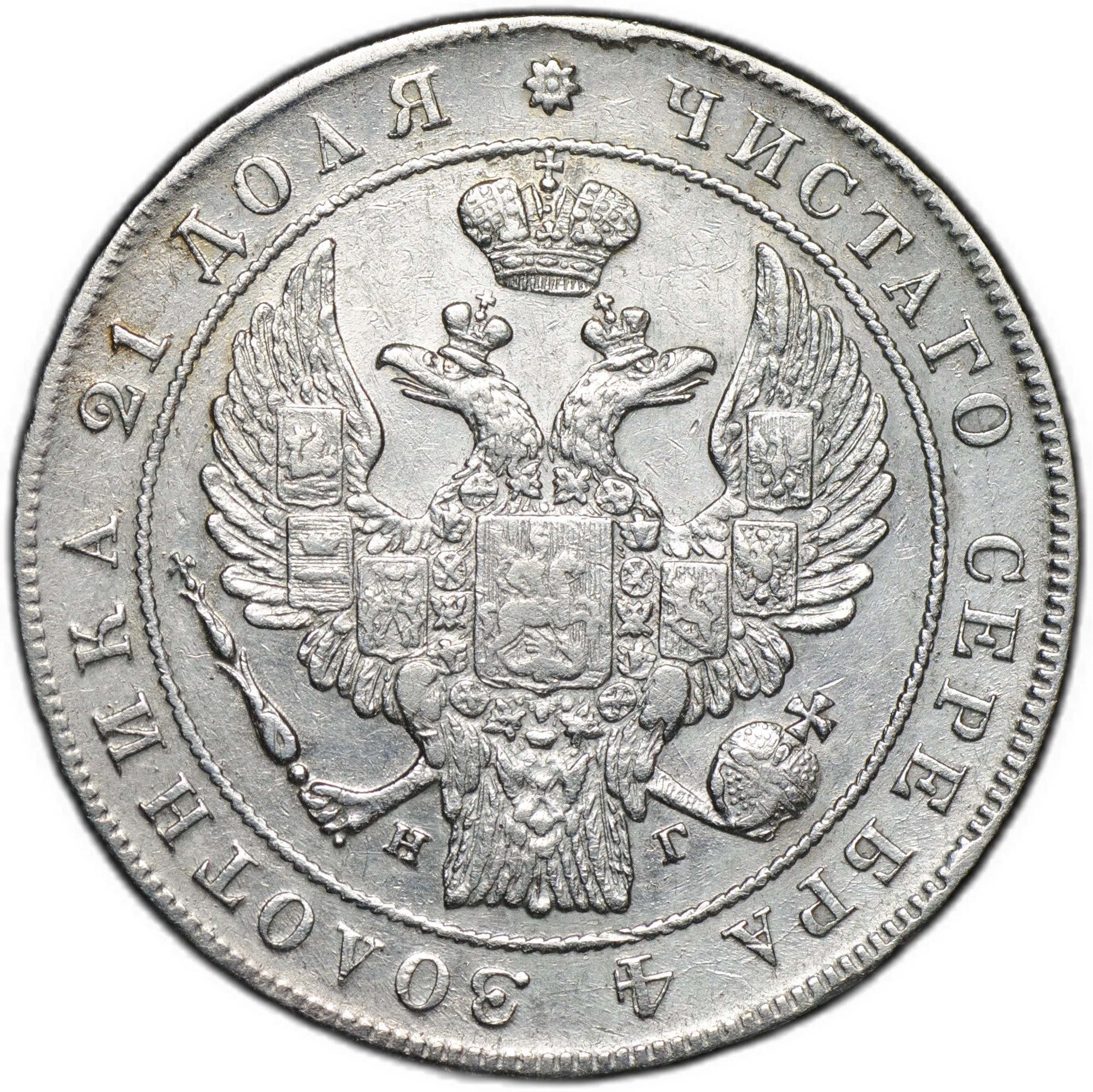 Аверс: орел образца 1832 года (перо в хвосте орла выступает)