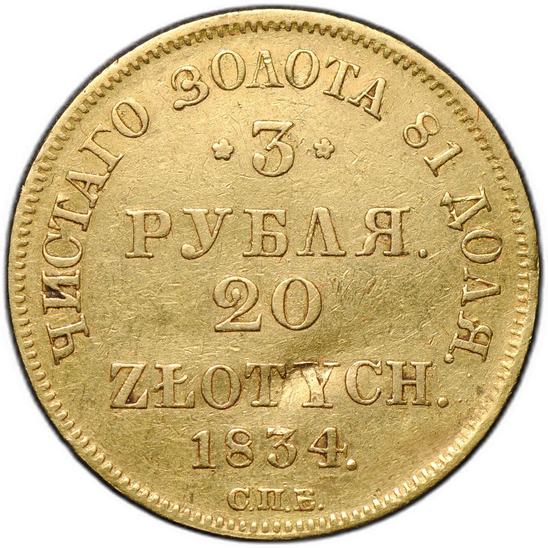 Номинал 3 рубля - 20 злотых