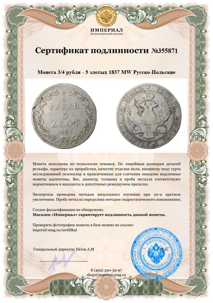 Номинал3/4 рубля - 5 злотых