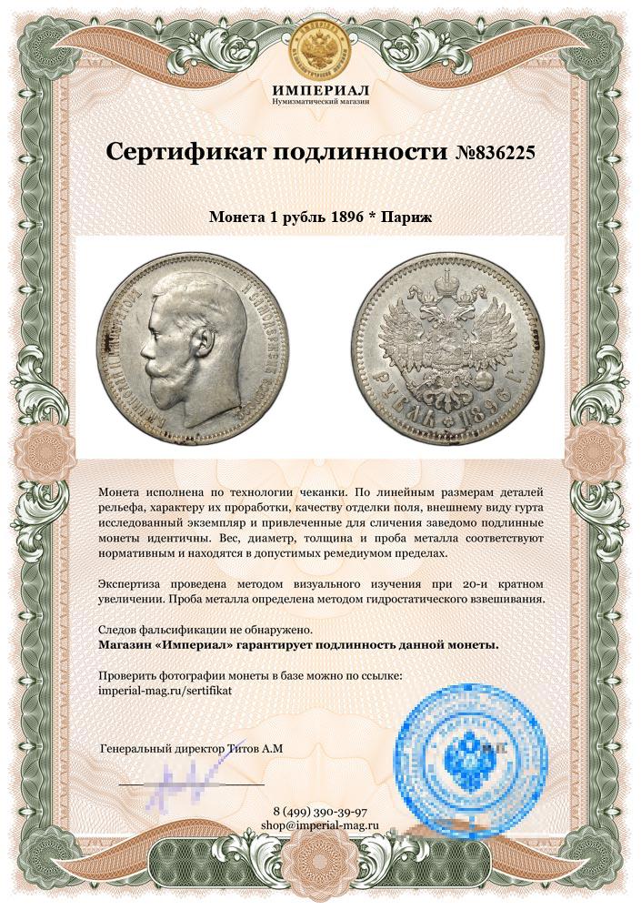 Монета 1 рубль 1896 * Париж