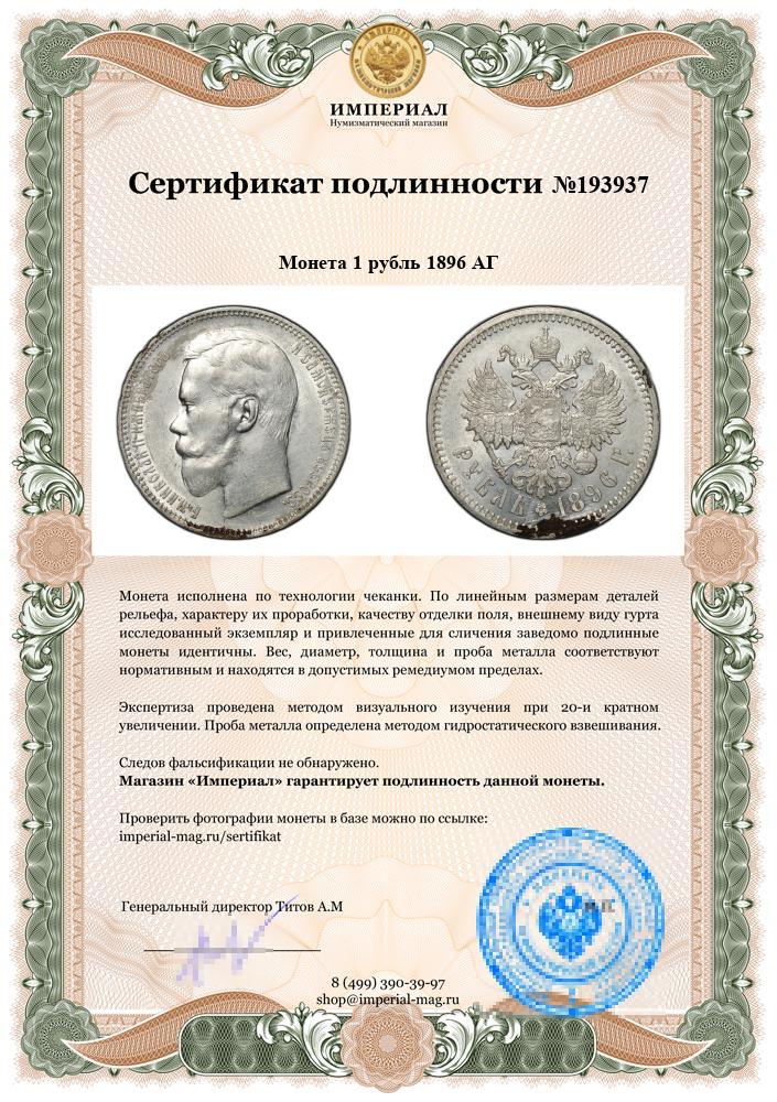 Монета 1 рубль 1896 АГ