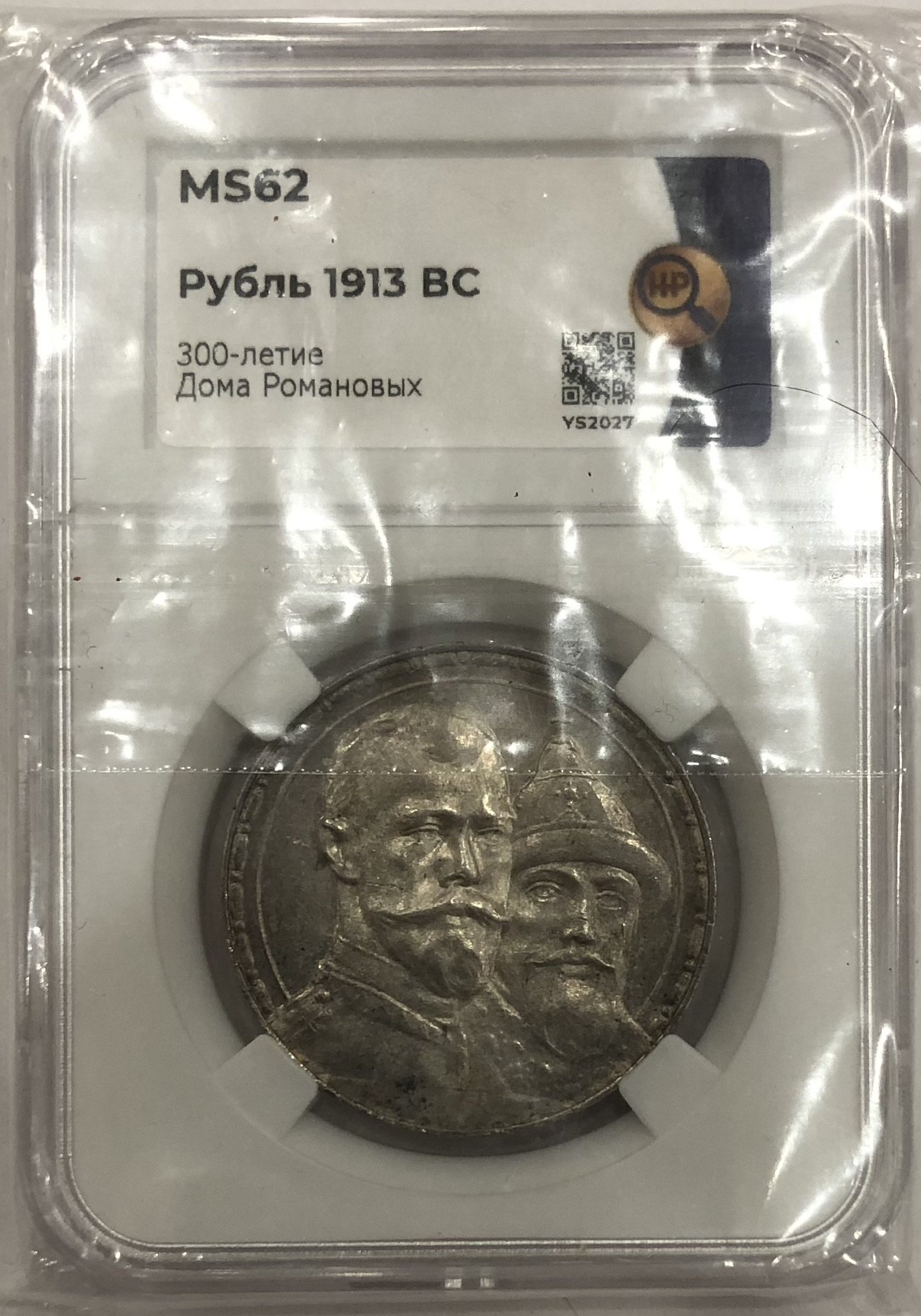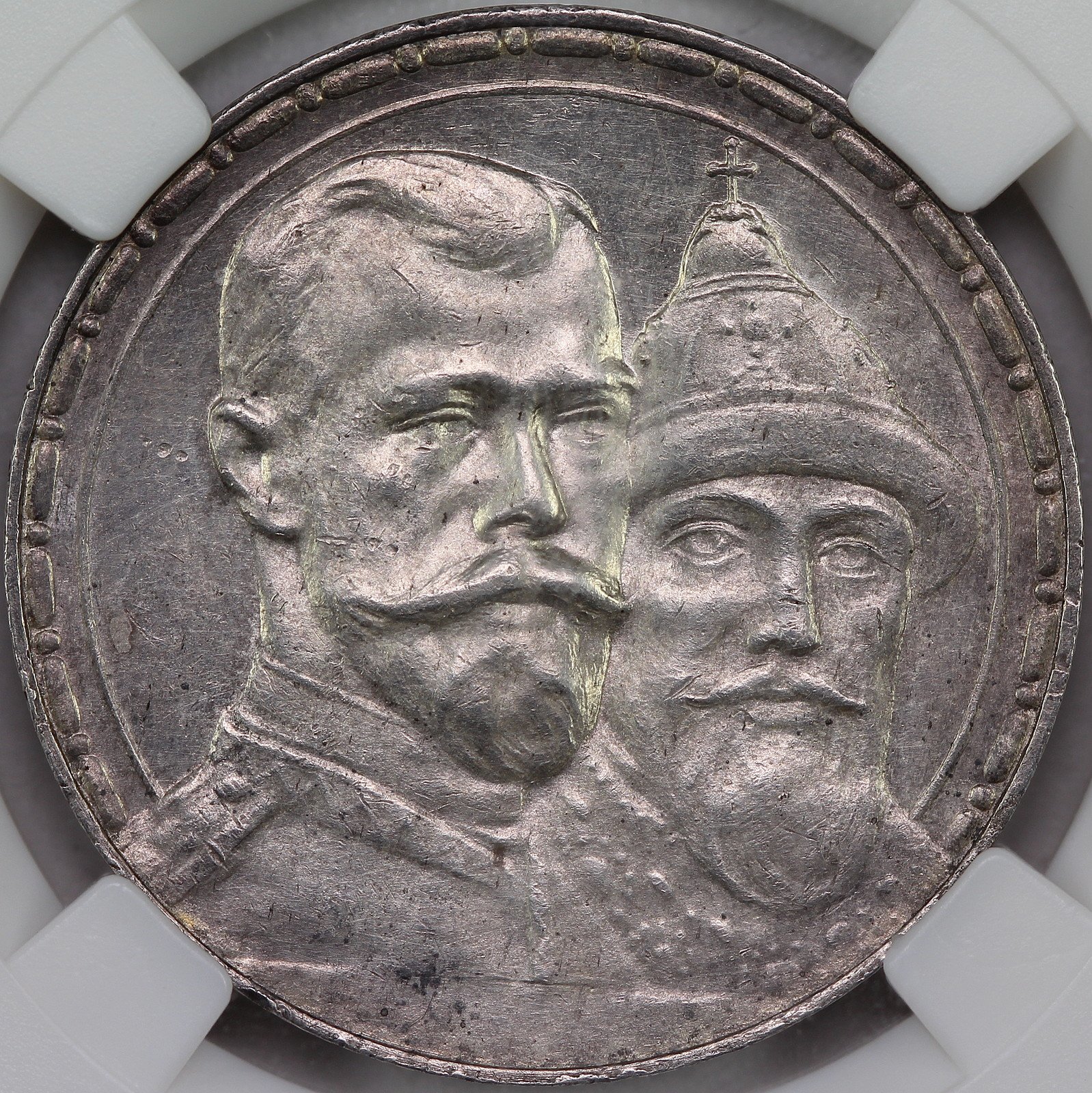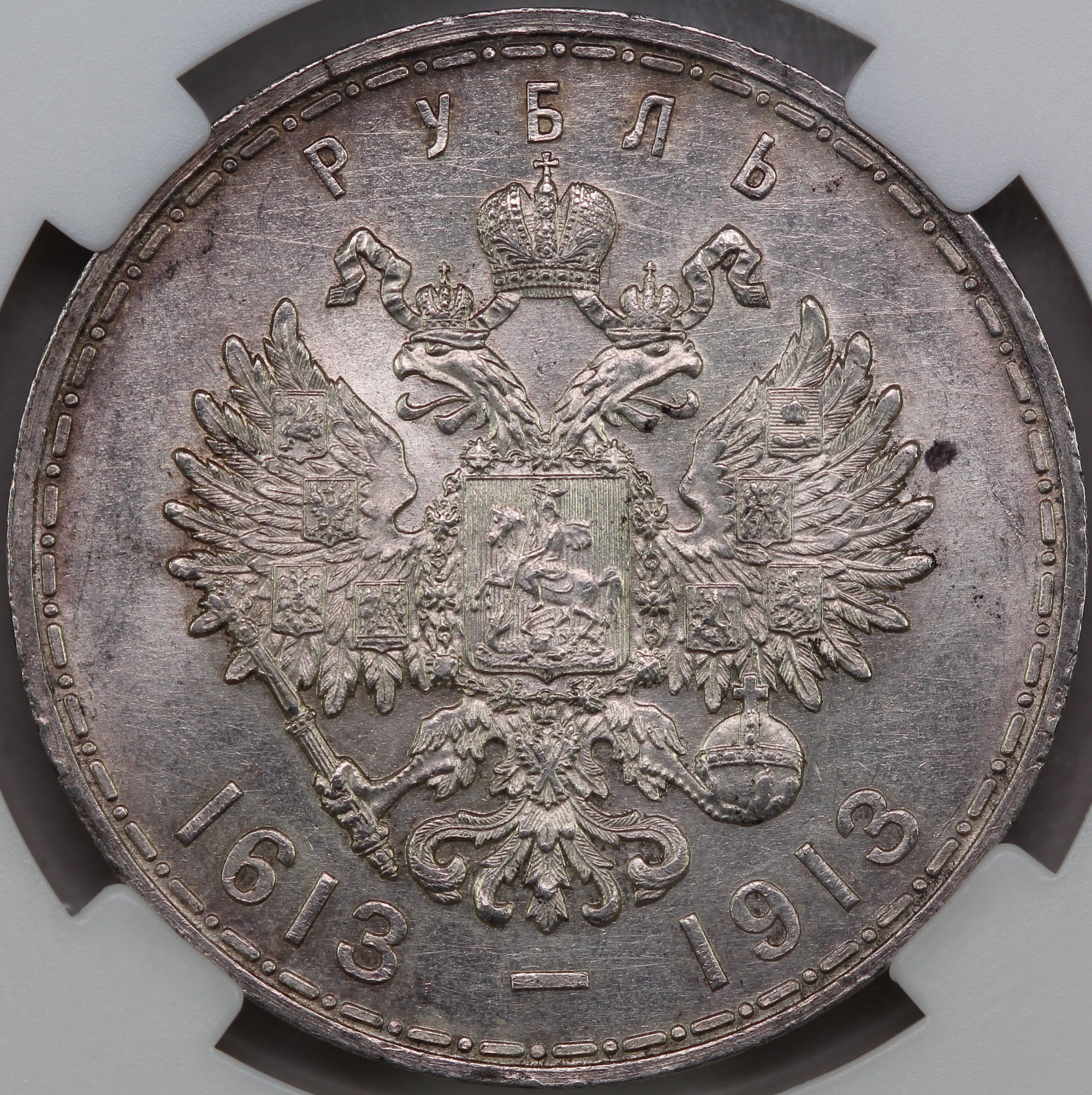 Этот товар продан! Монета 1 рубль 1913 ВС 300 лет Дому Романовых выпуклый чекан слаб ННР MS 62 в другой сохранности: