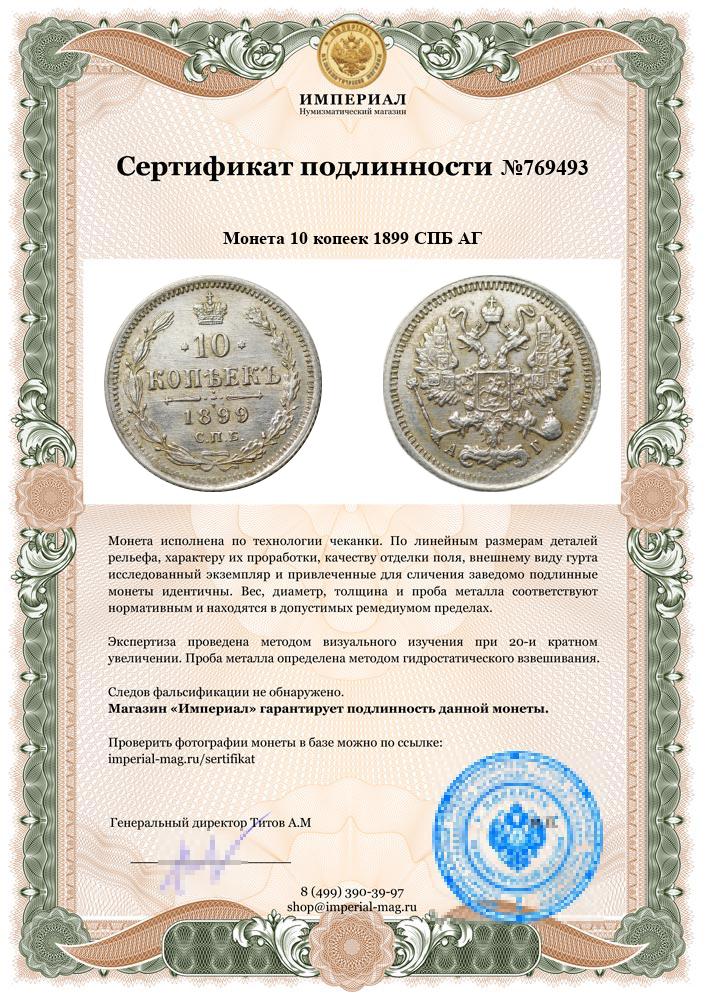 Монета 10 копеек 1895 СПБ АГ