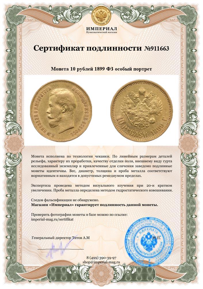 Редкий вариант портрета, встречающийся только на 10 рублях 1899 ФЗ