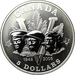 Монета 5 долларов 2005 60 лет победы во второй мировой войне Канада