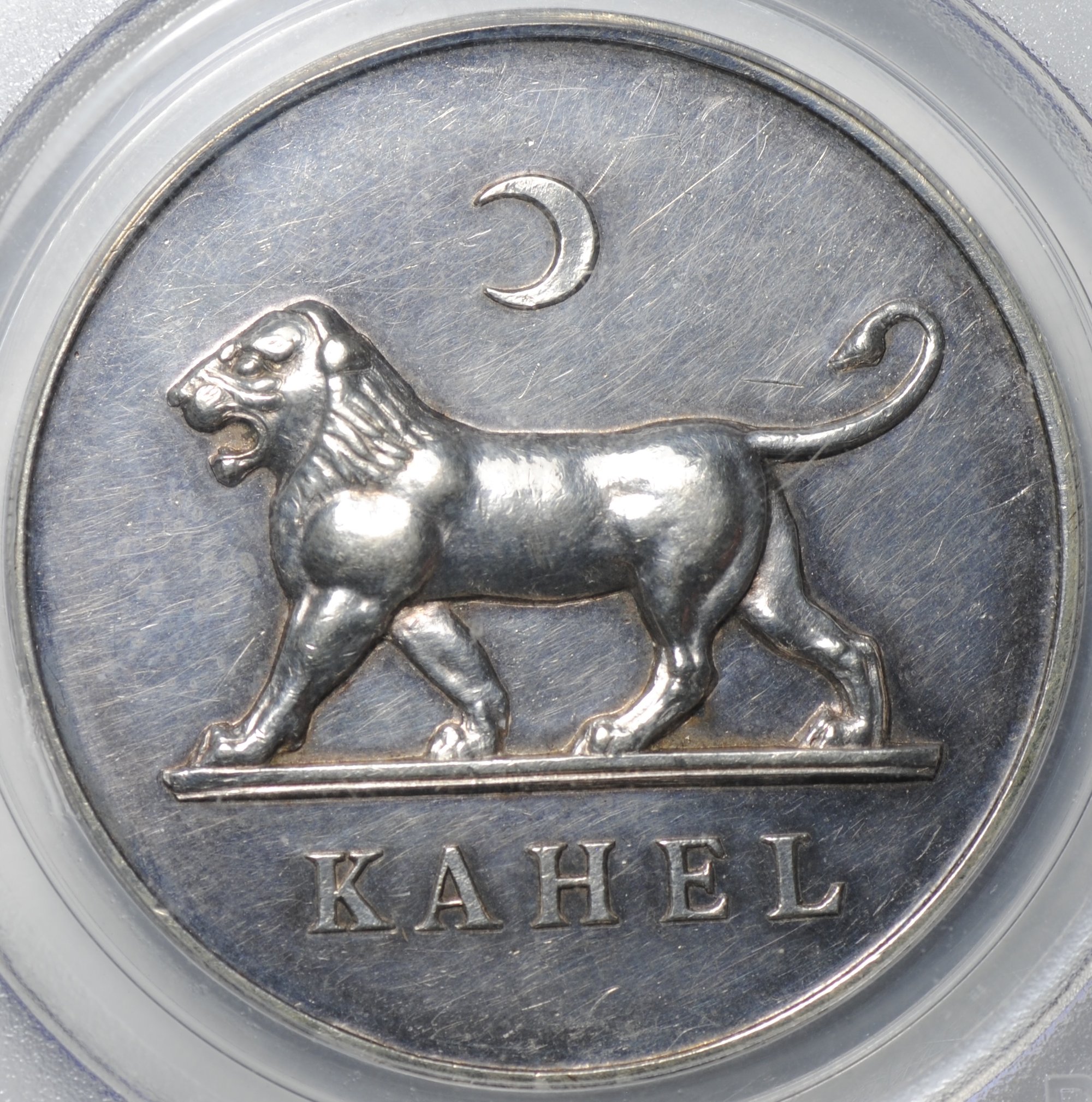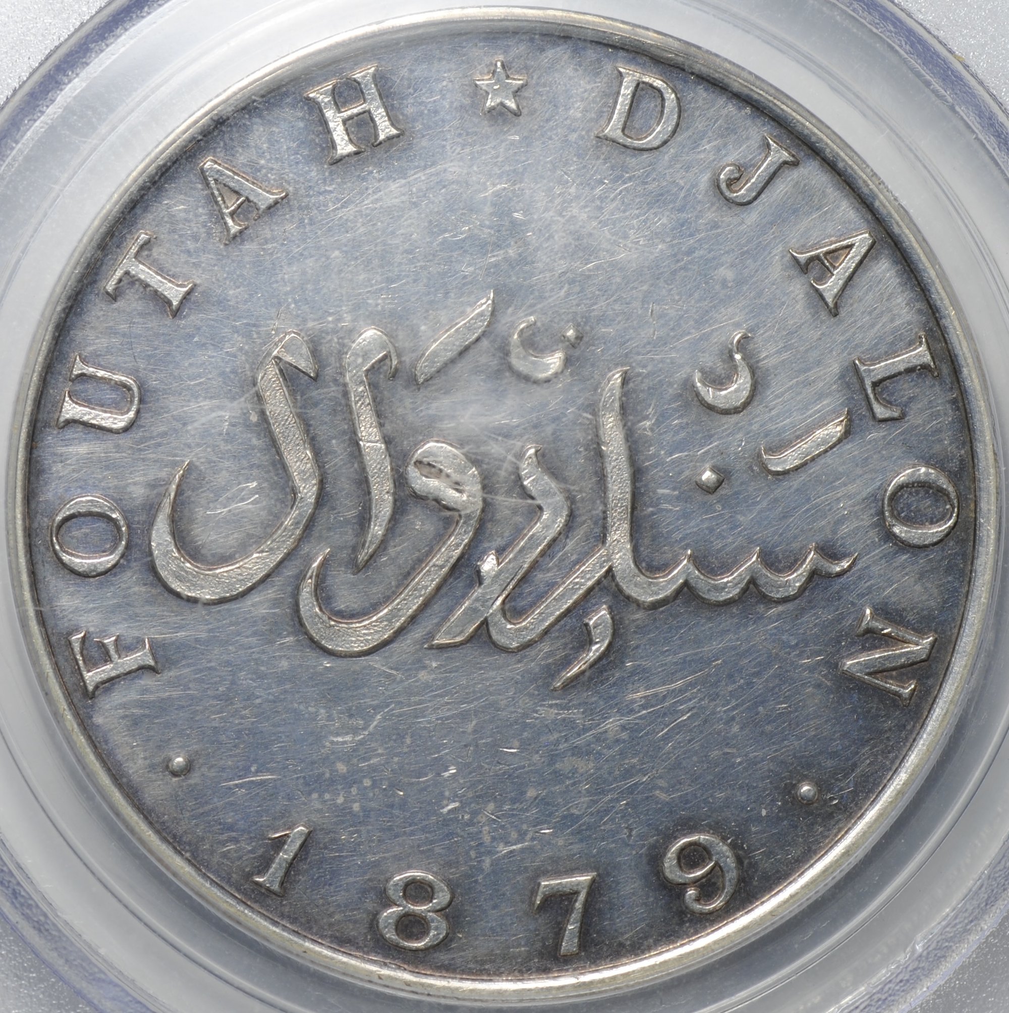 Частный пробный выпуск для французского предпринимателя и колониального авантюриста Эме Оливье де Сандерваля (1840–1919) . В 1878–1879 годах он самостоятельно, без официального мандата, отправился в Фута-Джаллон, договорился с местными вождями и объявил себя владельцем территории вокруг Кахеля. Он даже получил от вождей что-то вроде грамоты на владение землёй.