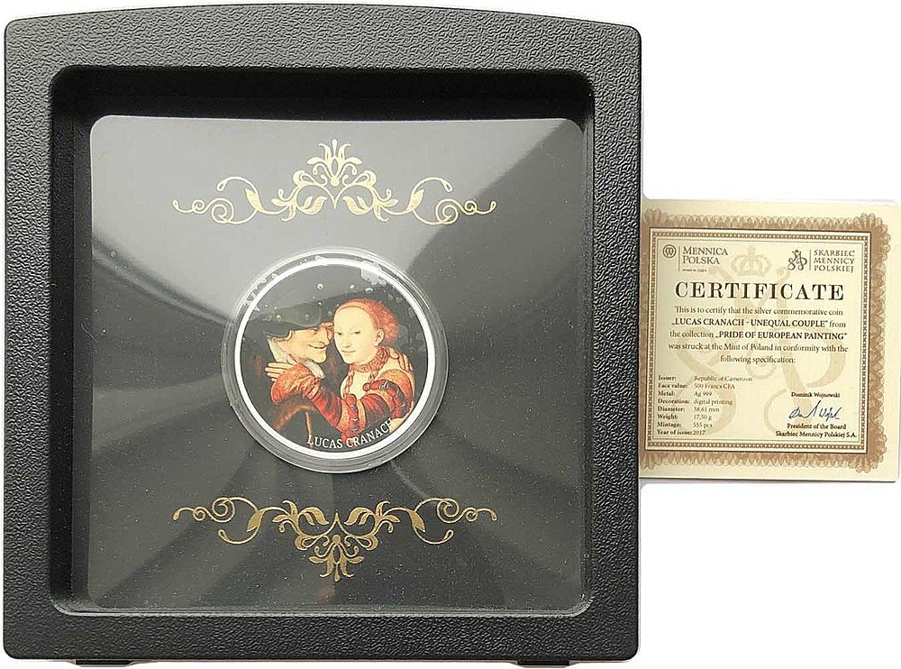 Монета 500 франков 2017 Картина Лот и его дочери Рубенс Камерун
