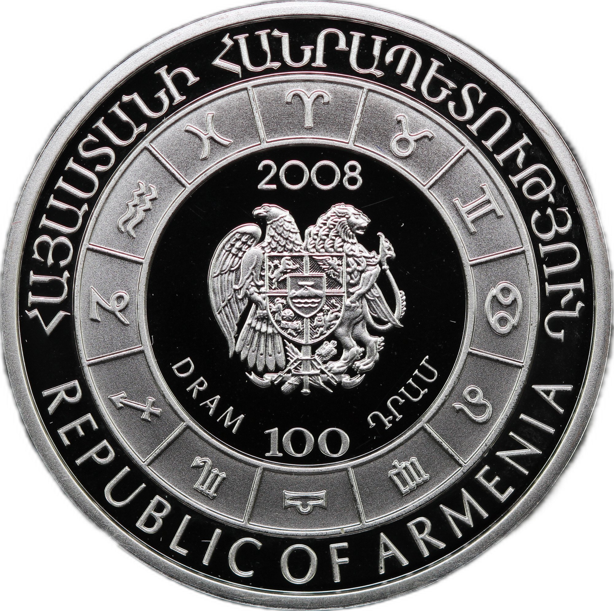 фото для Комплект 100 драм 2007-2008 Знаки Зодиака 12 монет Армения Аверс