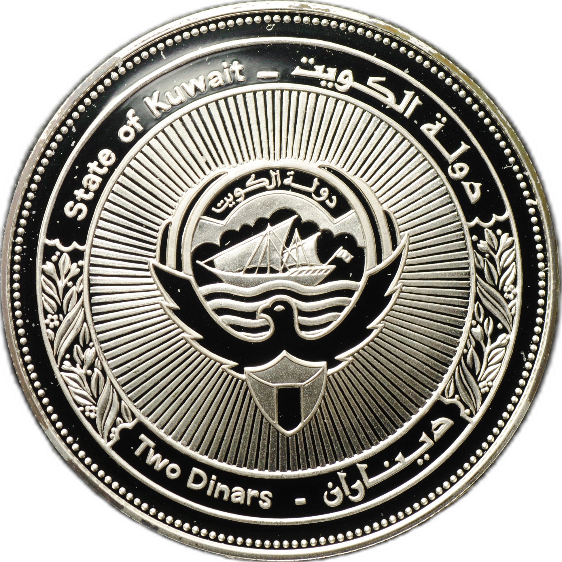 АверсState of Kuwait _ دولة الكويت / Two Dinars - ديناران / دولة الكويت