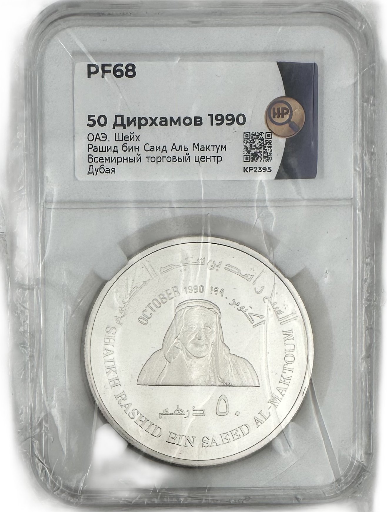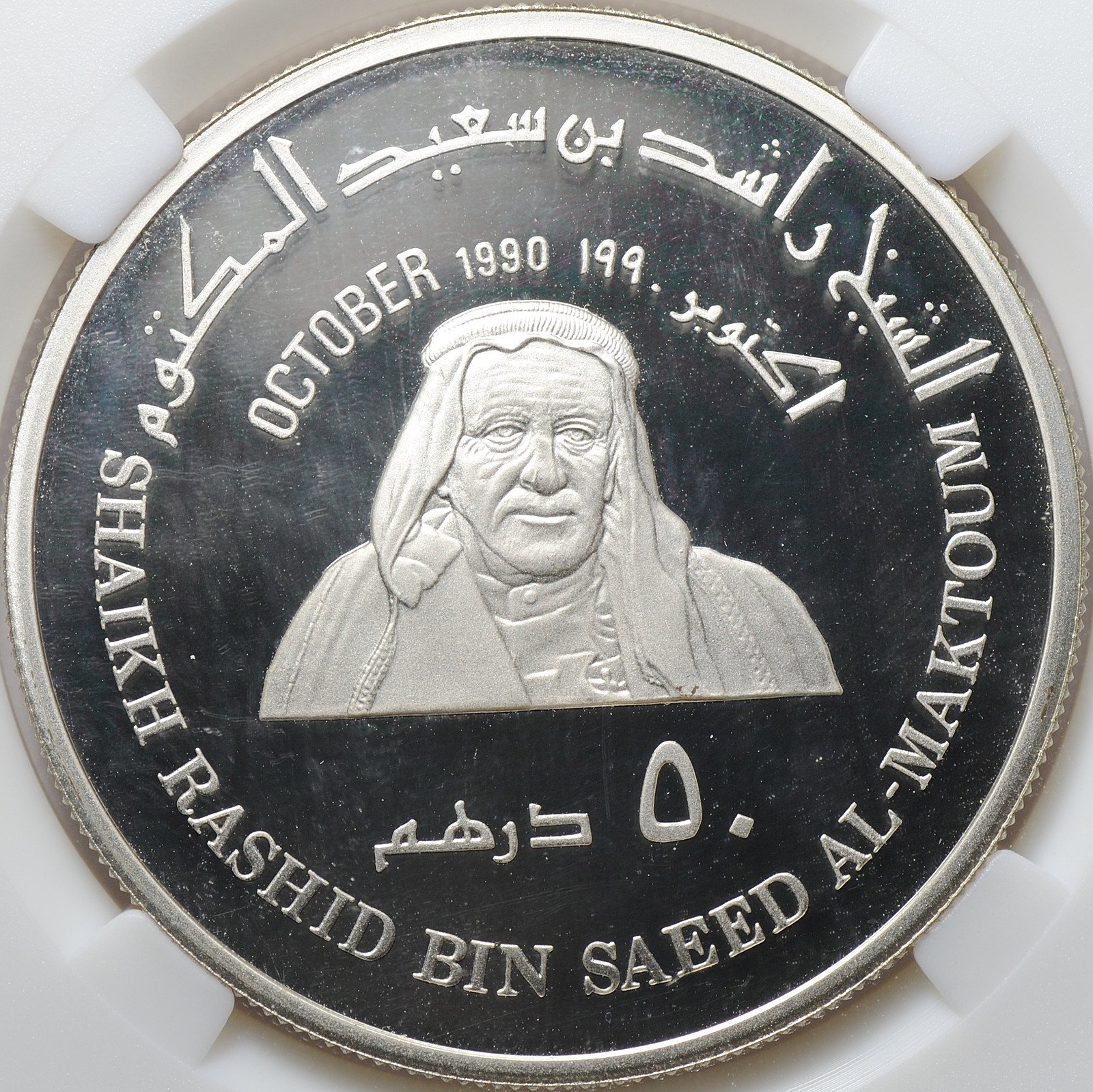 Аверс٥٠ درهم OCTOBER 1990 SHAIKH RASHID BIN SAEED AL-MAKTOUM اكتوبر ١٩٩٠ الشيخ راشد بن سعيد المكتوم