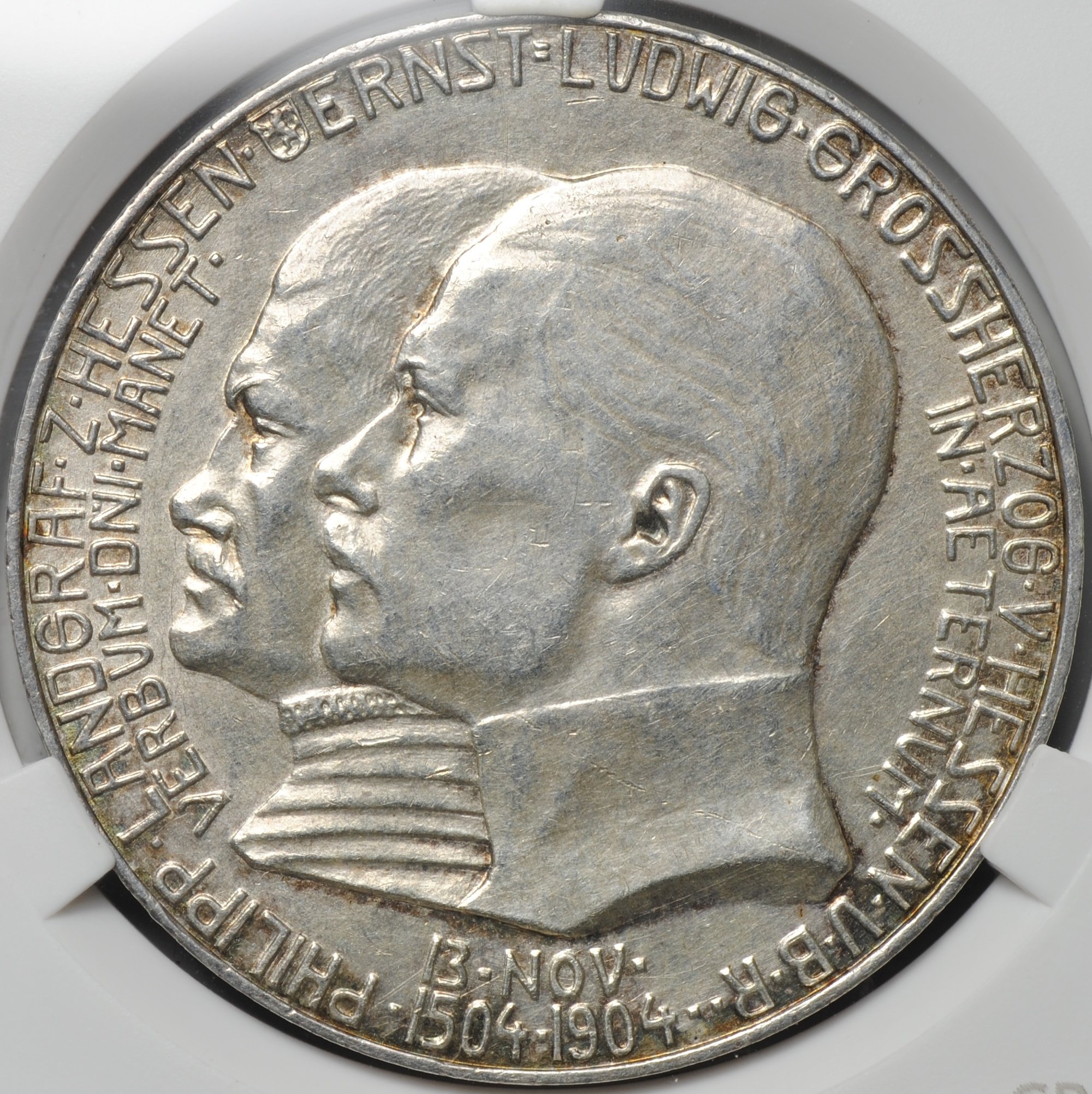 Аверс13.NOV.1504 - 1904IN.AETERNUM.PHILIPP LANDGRAF Z HESSEN ERNST LUDWIG GROSSHERZOG V HESSEN U B RVERBUM.ONI.MANET.