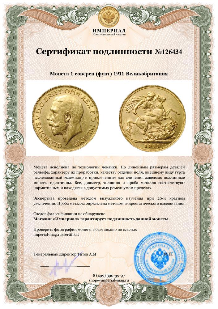 Номинал 1 соверен (фунт)