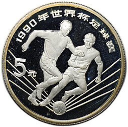 Монета 5 юаней 1990 Чемпионат мира по футболу Италия - Вратарь Китай
