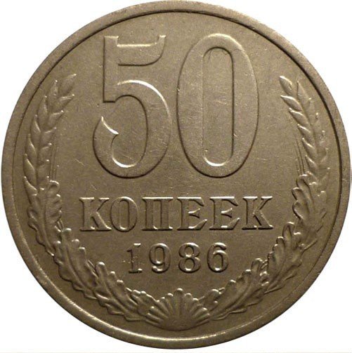 Гуртвдавленная надпись «Пятьдесят копеек 1986».
