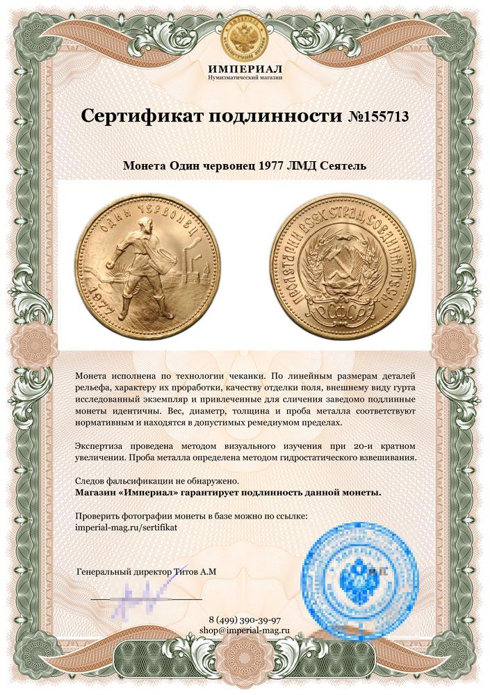Монета Один червонец 1977 ЛМД Сеятель